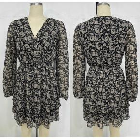 Chiffon V Neck Long Sleeved Mini Dress