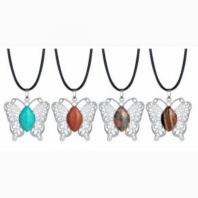 Butterfly Gemstone Pendant Necklace For Women Girls Beautiful Animal Crystal Necklaces Jewelry