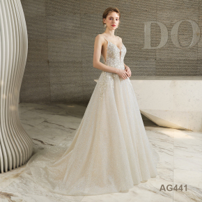 New Design Gorgeous Luxury Crystal Lace Appliqued Muslim ball gown wedding dress luxury