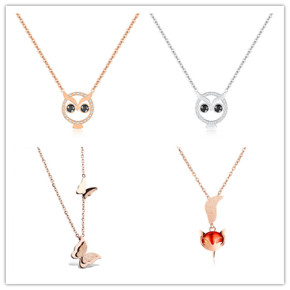 Women Owl Fox Butterfly Pendant Choker Necklace Stainless Steel CZ Crystal Charms Love Animal Jewelry for girls in Gift Box