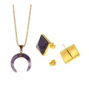 Natural crystal stud Stainless Steel Round Amethyst Turquoise Pendant Ring Earrings