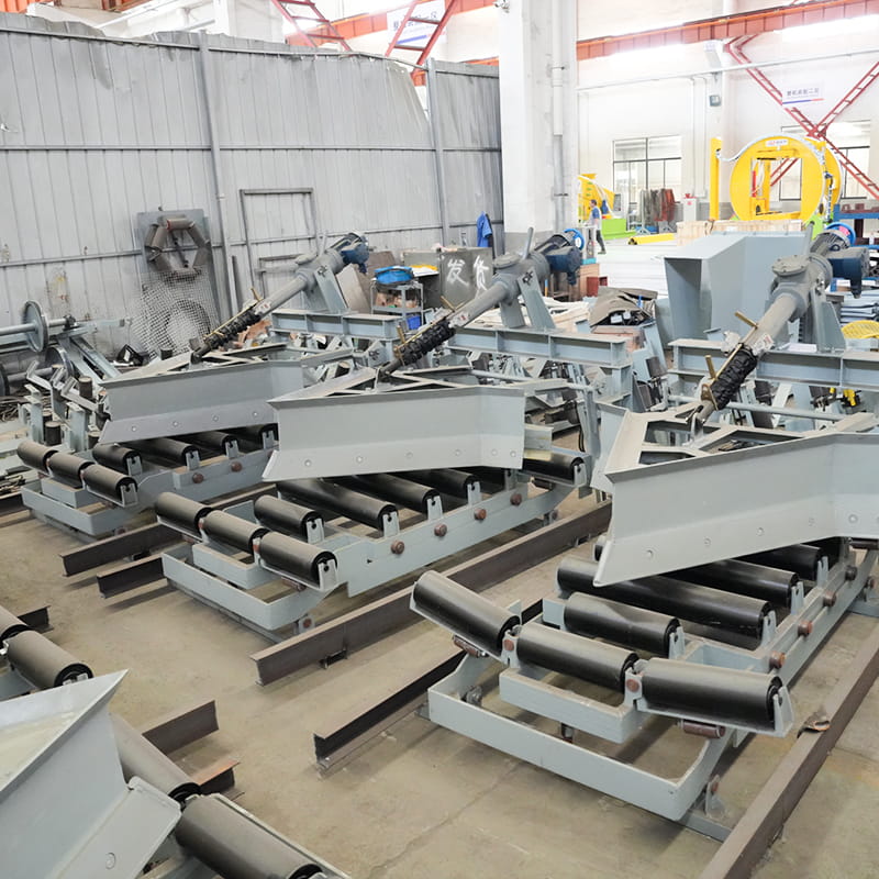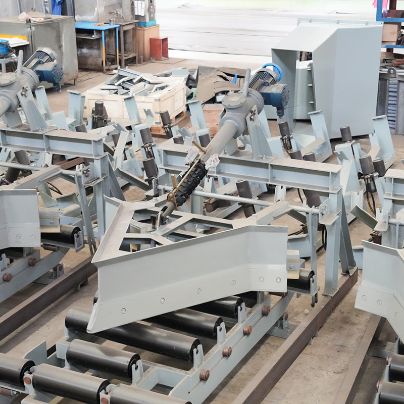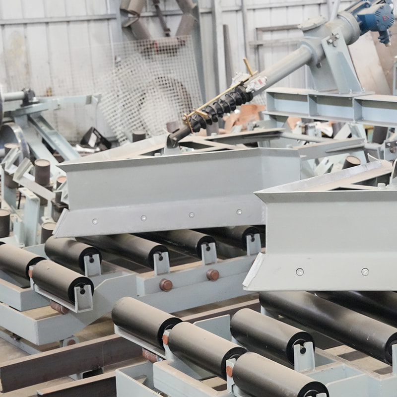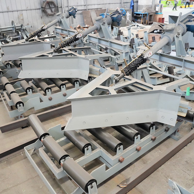 The electro-hydraulic plow unloader is a new type of Conveyor Discharge Device, which can be used as a multi-point unloading device to adapt to various types of belt conveyor with different bandwidths. The unloader has three unloading modes, namely bilateral unloading, right unloading and left unloading. The power source is the electro-hydraulic push rod. During the working process, the push rod extends outwards and acts on the transmission rod, which drives the frame to move forward, so as to realize the falling of the plow blade. At the same time, the flat roller group is supported to keep the working surface of the belt flat and ensure that the lower edge of the plow blade is closely attached to the surface of the Conveyor Belt, so that the materials on the running belt can be discharged into the hopper (or hopper) or to the designated position. After the unloading operation is completed, the push rod contracts and acts on the driving rod, which drives the machine frame to retreat a…