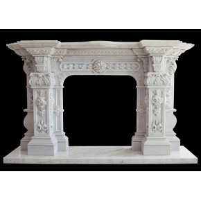 Hand Carved White Marble Mantel Floral Reliefs Artisan