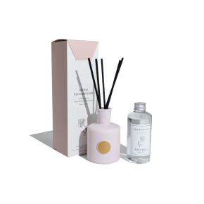 Wholesale Luxury Customised Round Pink Glass Bottle Floral Reed Diffuser Perfume With Box