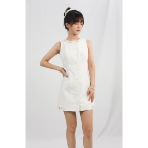 Sleeveless Button-Down Mini Dress with Floral Embroidery