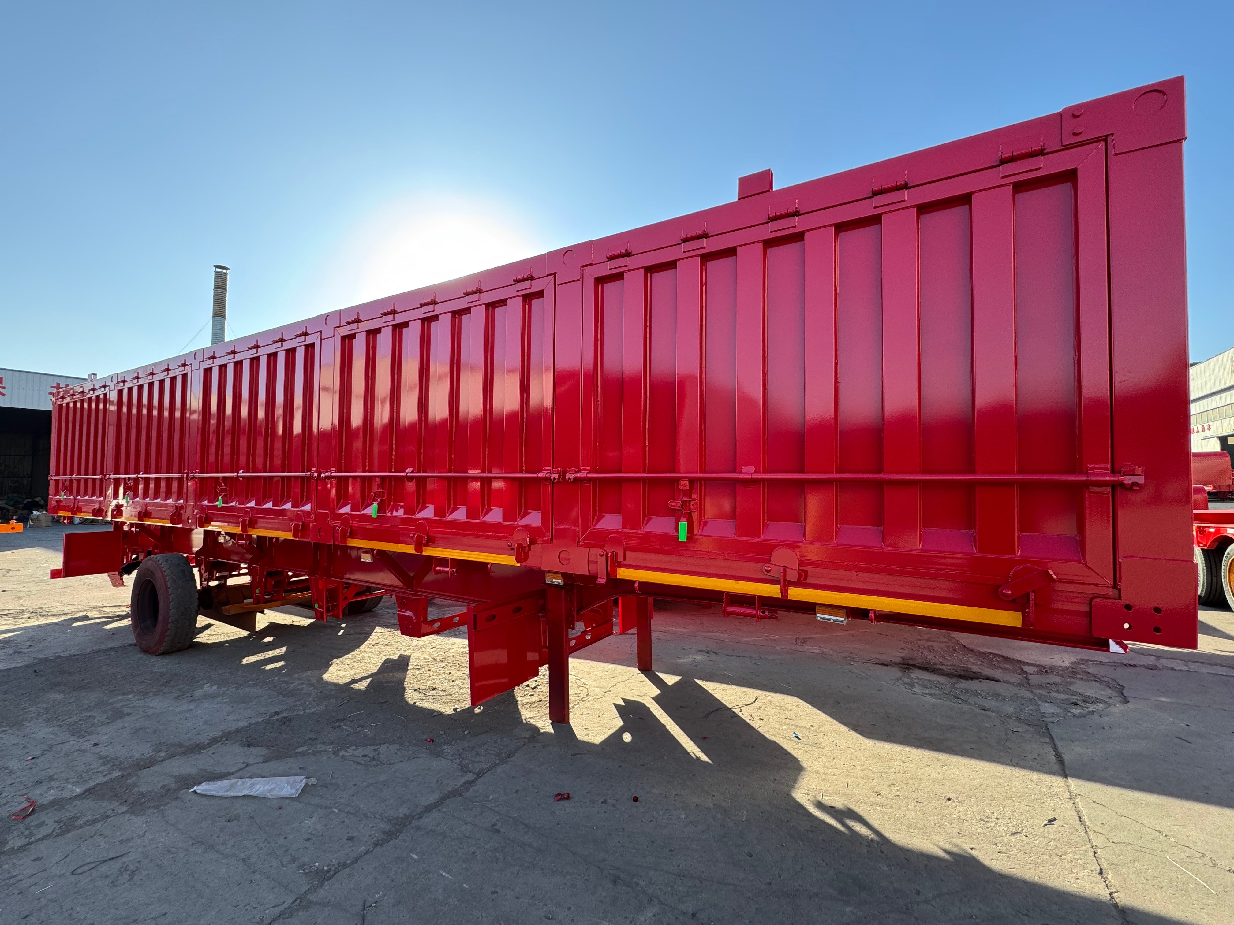 The Engineering - Specific Side Dumping Trailer is a professional transportation tool customized for the engineering construction field. The red appearance is eye - catching and has exclusive recognition for engineering equipment. It focuses on the transportation and unloading needs of materials such as muck and building materials in engineering scenarios. With professional design, it shows excellent adaptability and operation efficiency in complex engineering environments and is one of the core equipment in the engineering logistics link.