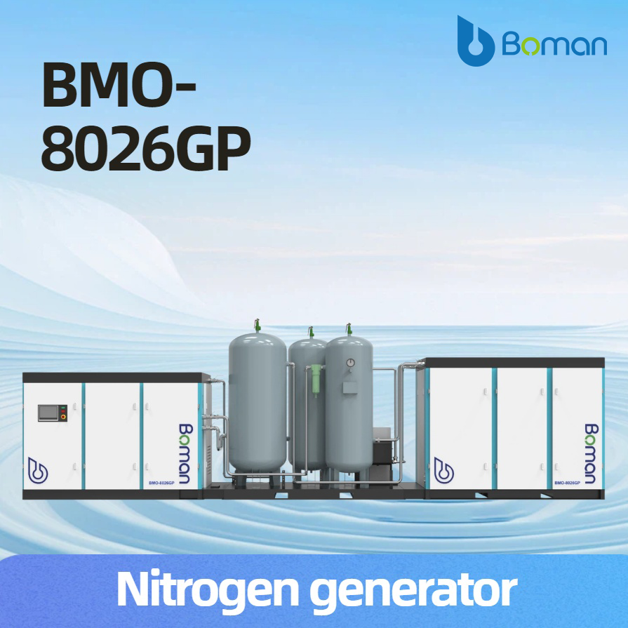 The BMO-8026GP is a highly compatible nitrogen generator suitable for laser cutting with a power of over 80,000 watts (or multiple units for joint supply). The entire machine has a power of 60KW and a gas production capacity of 260Nm³/h. It features a multi-tank integration and intelligent pressure control design, balancing high flow rate and stability. Its nitrogen purity is adjustable from 85% to 99%, the outlet dew point is -40℃, and the cleanliness (oil content ≤0.1mg/m³) can meet the protection requirements of various high-power cutting heads.