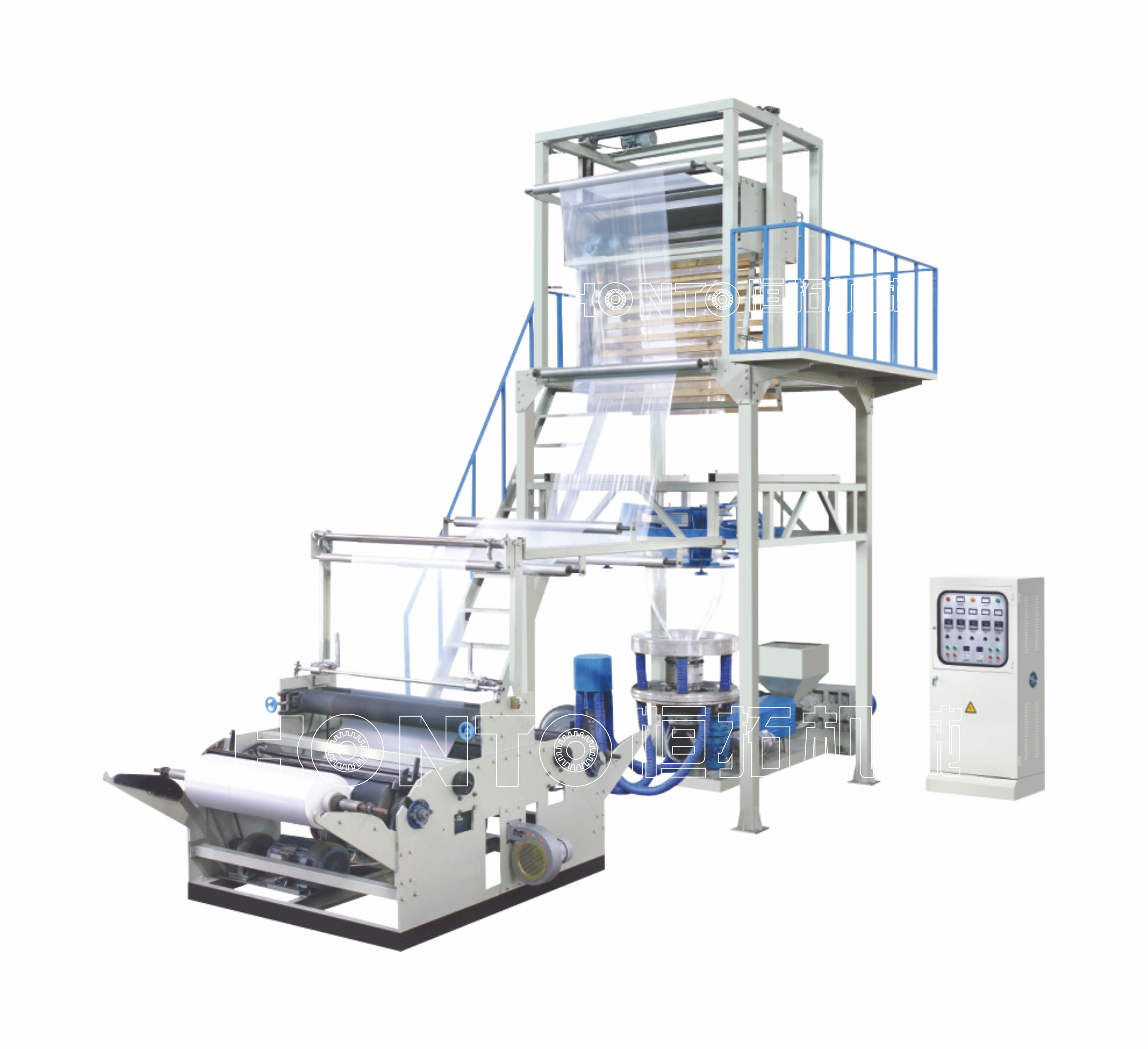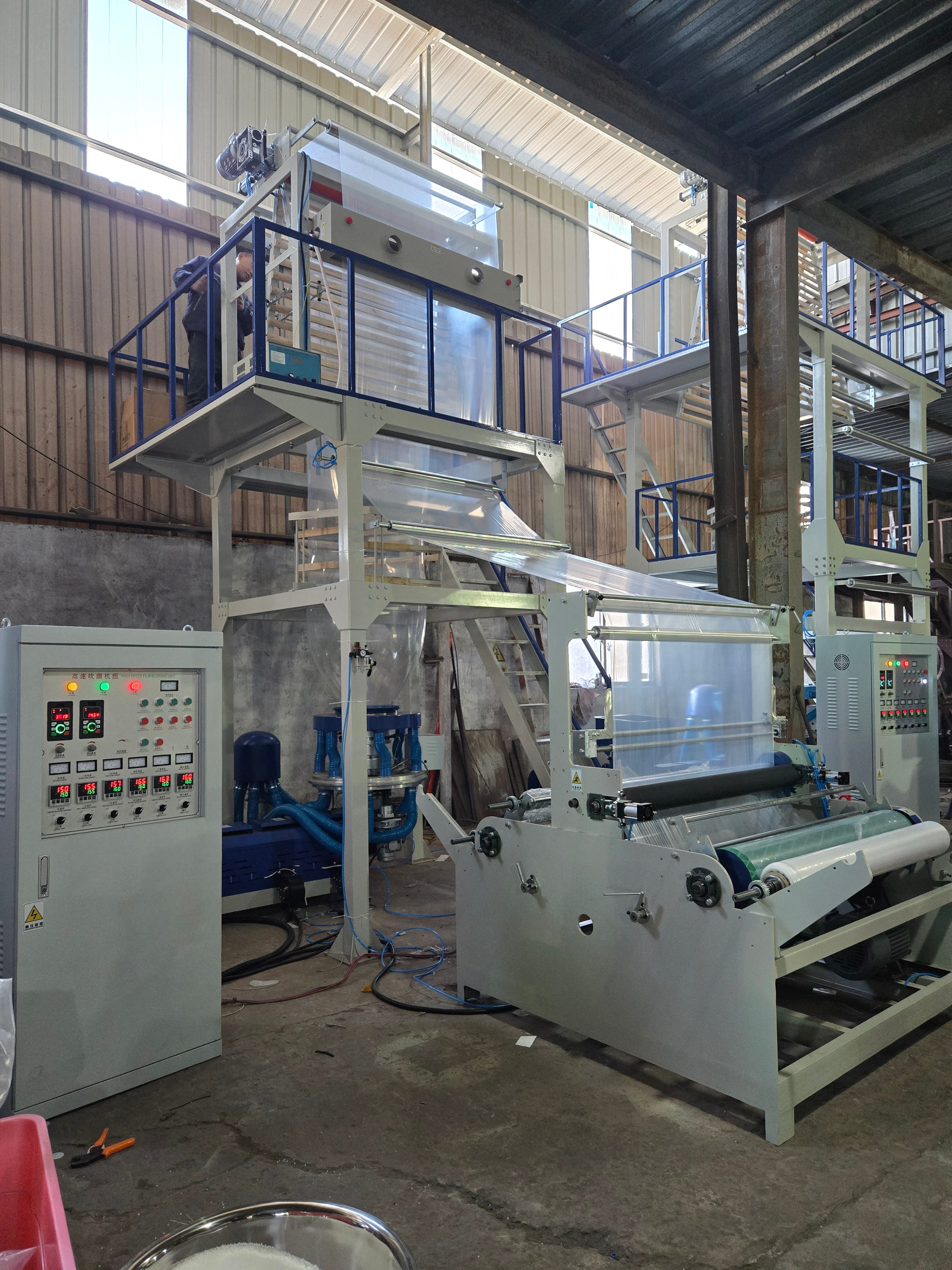 The High Speed PE Film Blowing Machine is a specialized piece of equipment designed for producing high-quality polyethylene (PE) films . This machine is capable of processing both low-density polyethylene (LDPE) and high-density polyethylene (HDPE) materials, making it versatile for various applications.