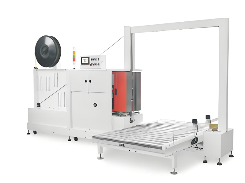 The Industrial Stretch Wrapping Equipment adopts a side-strapping high-tension head structure, with strap tension adjustable between 20-250KG via a touchscreen interface. It is suitable for PP and PET strapping bands, with optional main unit travel distances of 400mm or 600mm.