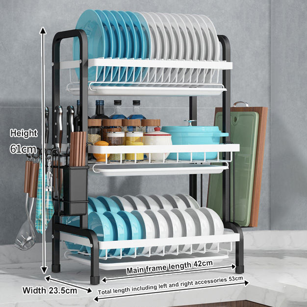 Iron Three-Tier Dish Rack with Cutlery Holder is a practical and stylish solution for keeping your kitchen organized and efficient. Designed with both functionality and aesthetics in mind, this kitchen dish rack offers a spacious layout that accommodates plates, bowls, cups, and other dining essentials. The steel dish rack construction ensures durability and resistance to rust, making it an ideal choice for any modern kitchen environment. With its built-in cutlery holder, this dish drainer allows you to neatly store knives, forks, and spoons, promoting a more hygienic and clutter-free space. Whether you're looking for a kitchen dish rack that can fit into your existing decor or a steel dish rack that offers long-term use, this product delivers on all fronts. Its three-tier design provides ample storage capacity while maintaining a compact footprint, making it suitable for kitchens of all sizes.The combination of a dish drainer and cutlery holder makes it a versatile addition to your…