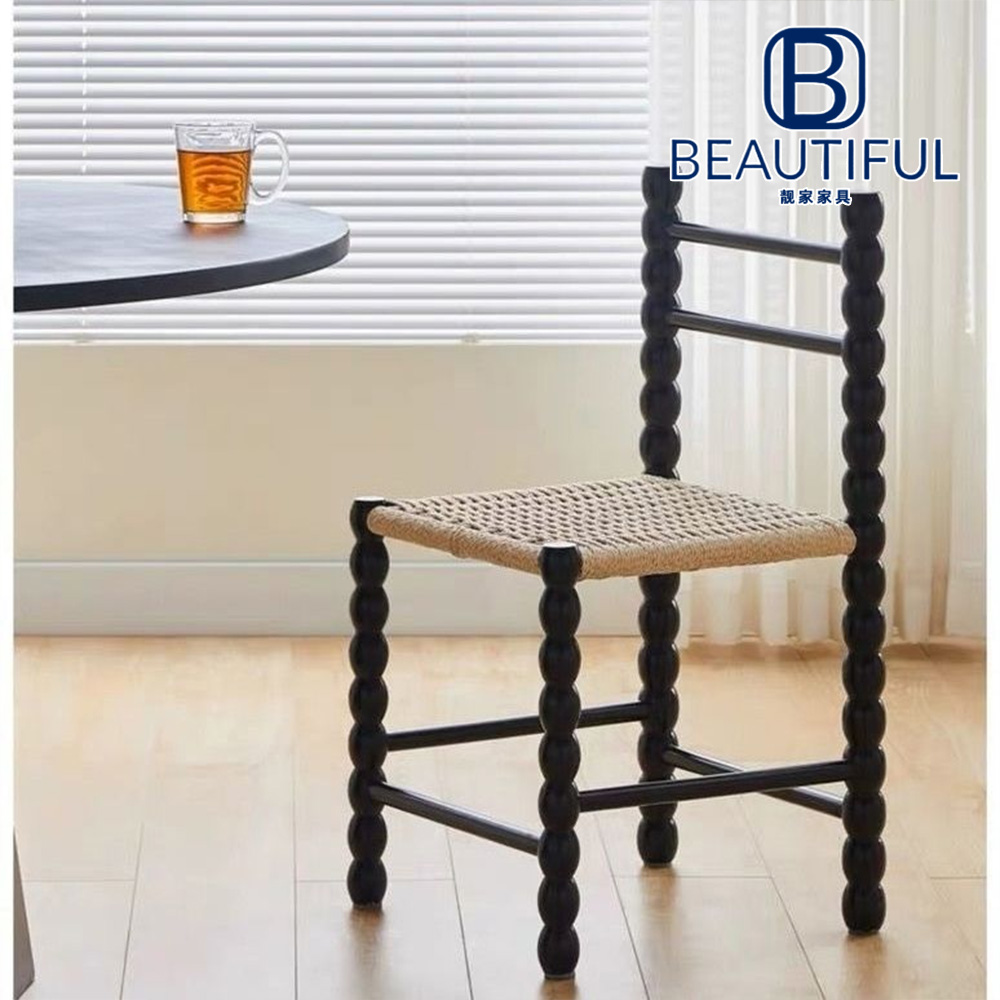 This chair features a distinctive gourd-inspired design element, adding a touch of mid-century elegance. The seat surface is rope-woven, providing excellent breathability and comfort. Crafted with wood wax oil technology, it has a smooth, natural finish. Packaged as 2 pieces per box, it ensures safe transportation. With dimensions of 40W43D77H (cm), its ergonomic design offers great support. The mortise-tenon structure showcas…