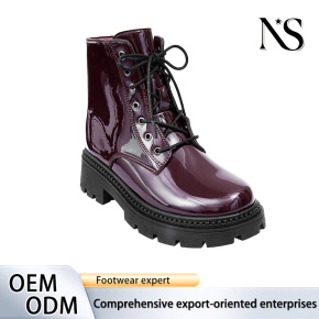 Premium Burgundy Patent Lace-Up Biker Boots