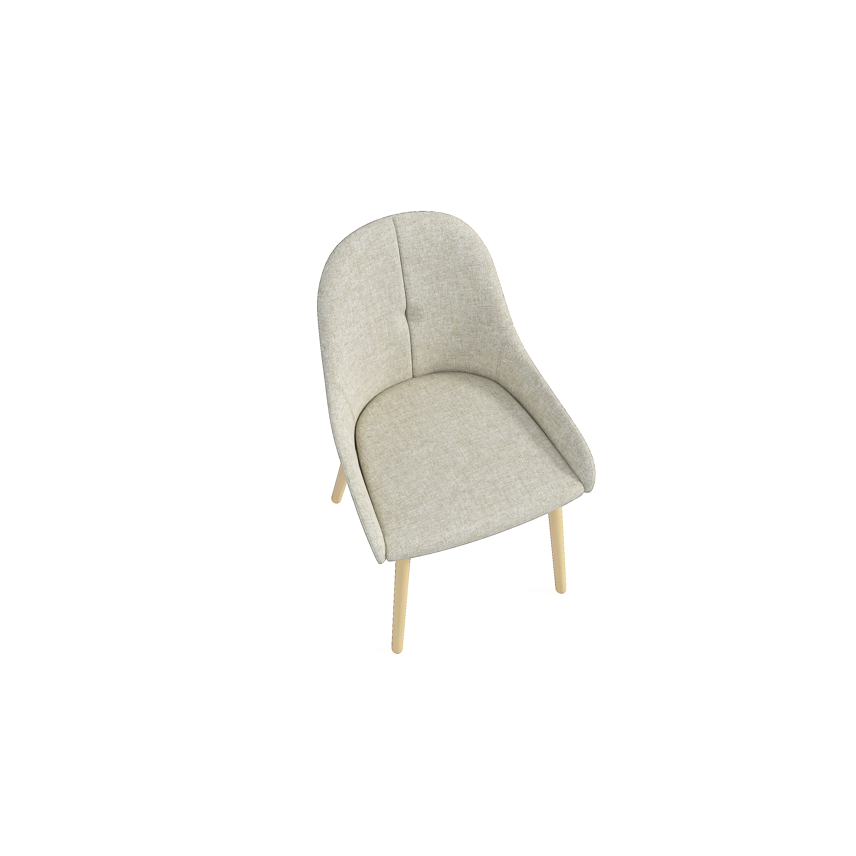 The backrest has an elegantly curved shape that follows the curve of the human back for comfortable support. The seat is wide and padded for a comfortable sitting. The four wooden feet at the bottom are slightly angled outwards to increase stability and give the chair a unique shape. The middle of the backrest is decorated with buttons to add a sense of detail.