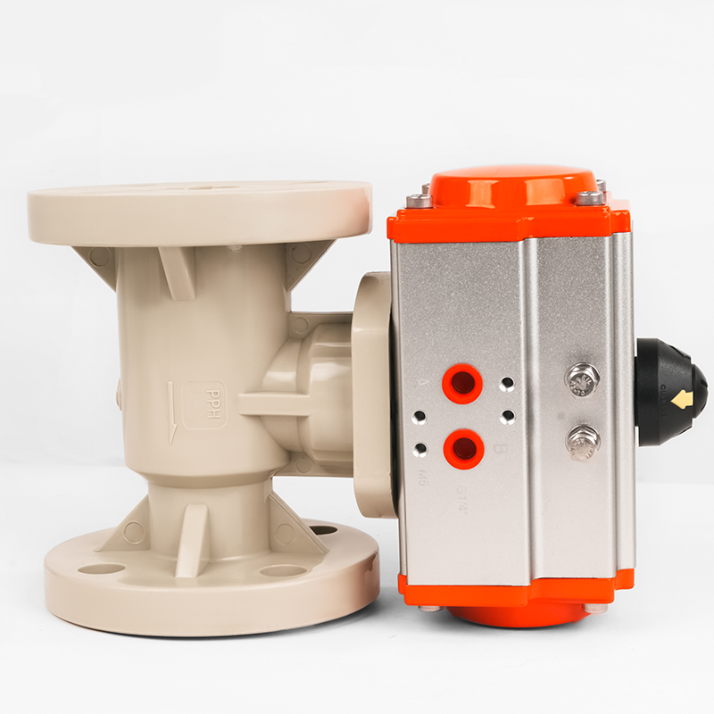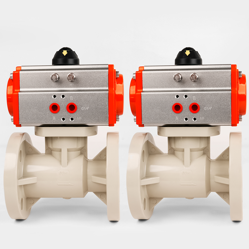 The Pneumatic PP Flange Ball Valve is a pressure-regulating valve designed for air systems, featuring a pneumatic actuator for reliable, rapid operation. This pneumatic operated ball valve ensures precise control and tight sealing in corrosive or high-purity environments. Constructed from durable polypropylene (PP) with flanged connections, it combines chemical resistance with robust performance, ideal for industrial applications requiring safe, efficient airflow management.