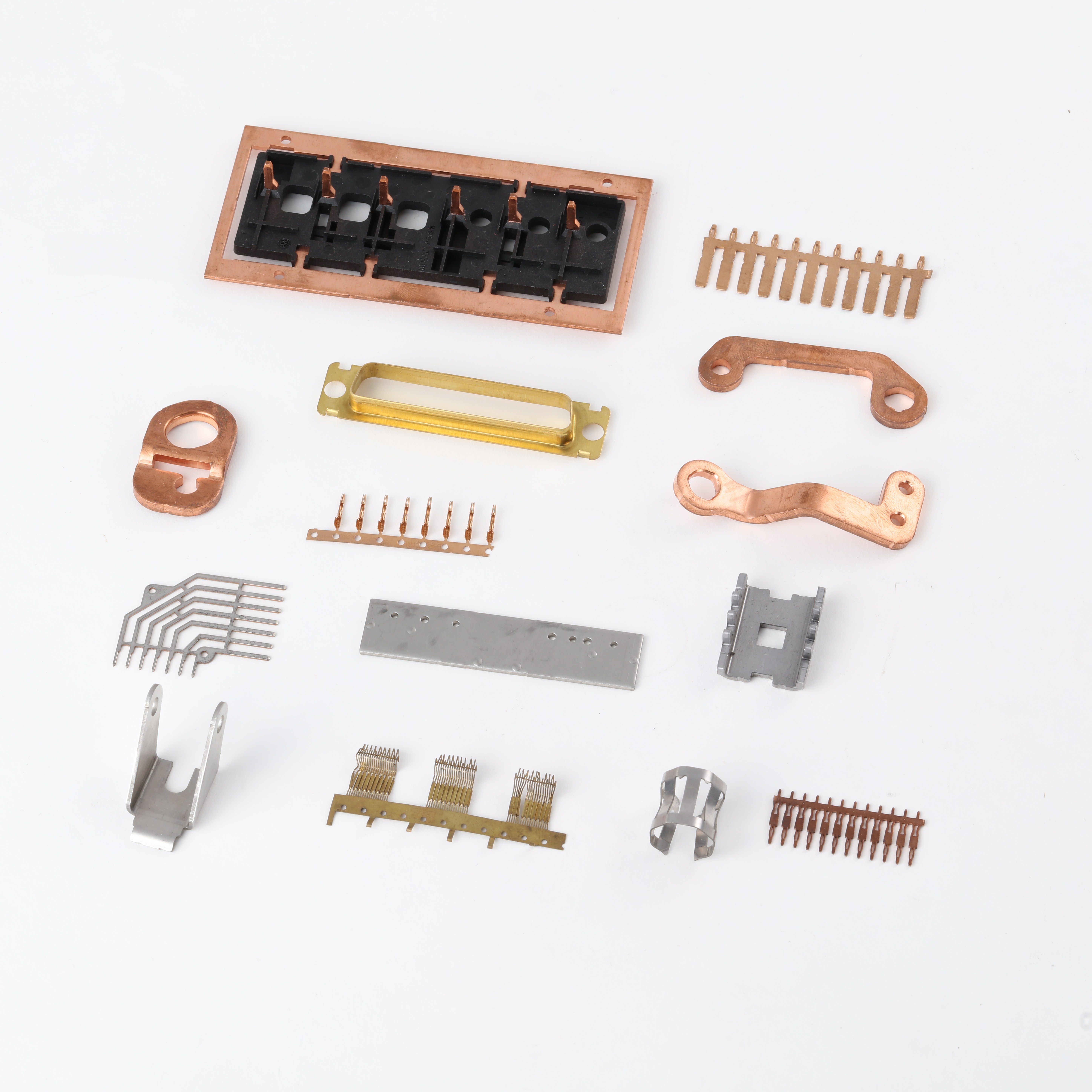 Our precision metal stamping parts are manufactured from high-quality metal materials (such as copper, stainless steel, brass, and aluminum alloys) using advanced stamping technology. These parts include terminals, connectors, brackets, spring clips, and custom-shaped components, widely used in electrical connections, fixation, and conduction applications. The products are ingeniously designed with precise dimensions, capable of withstanding high-strength and high-frequency usage environments. Whether for mass production or small-batch customization, we provide reliable solutions to ensure stable performance, durability, and compliance with international standards (such as RoHS and ISO 9001 certification).