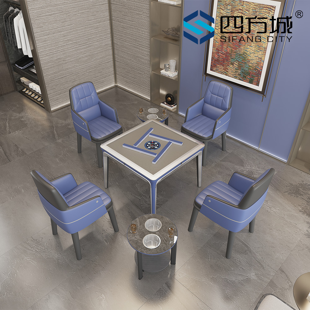 T760 Yujie Series Deep Space Blue Mahjong Table Step into the future of entertainment with the T760 Yujie Series Deep Space Blue Mahjong Table, where visionary design meets intelligent innovation. This table merges "Deep Space Blue" with "Interstellar Silver" in a low-saturation matte finish and cool metallic accents, creating a bold, futuristic aesthetic. Its form draws inspiration from aerospace and sci-fi designs, combining sharp angles and flowing curves to redefine what a mahjong table can be. Beyond its striking look, the T760 delivers smart functionality. Its outward-angled legs ensure superior stability, while the innovative magnetic chip box replaces traditional drawers—allowing modular storage to attach effortlessly on any side for 360° access. The surface is finished with automotive-grade vacuum coating, offering vibrant color, rich texture, and exceptional durability against scratches and wear. Perfect for modern homes, private clubs, or stylish lounges, the T760 Yujie Seri…