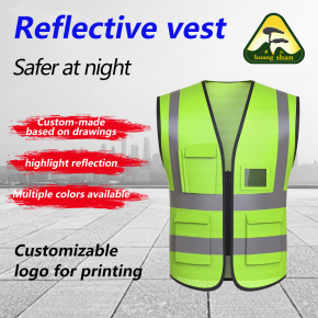 Mesh fabric zipper multi pocket safety vest green