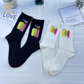 Aplashed ink colored letter embroidery mid tube socks
