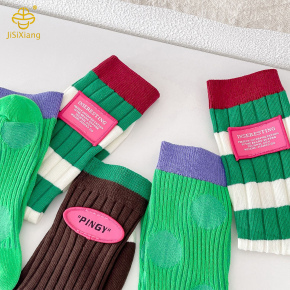 Korean version color blocking manual labeling mid tube socks for women