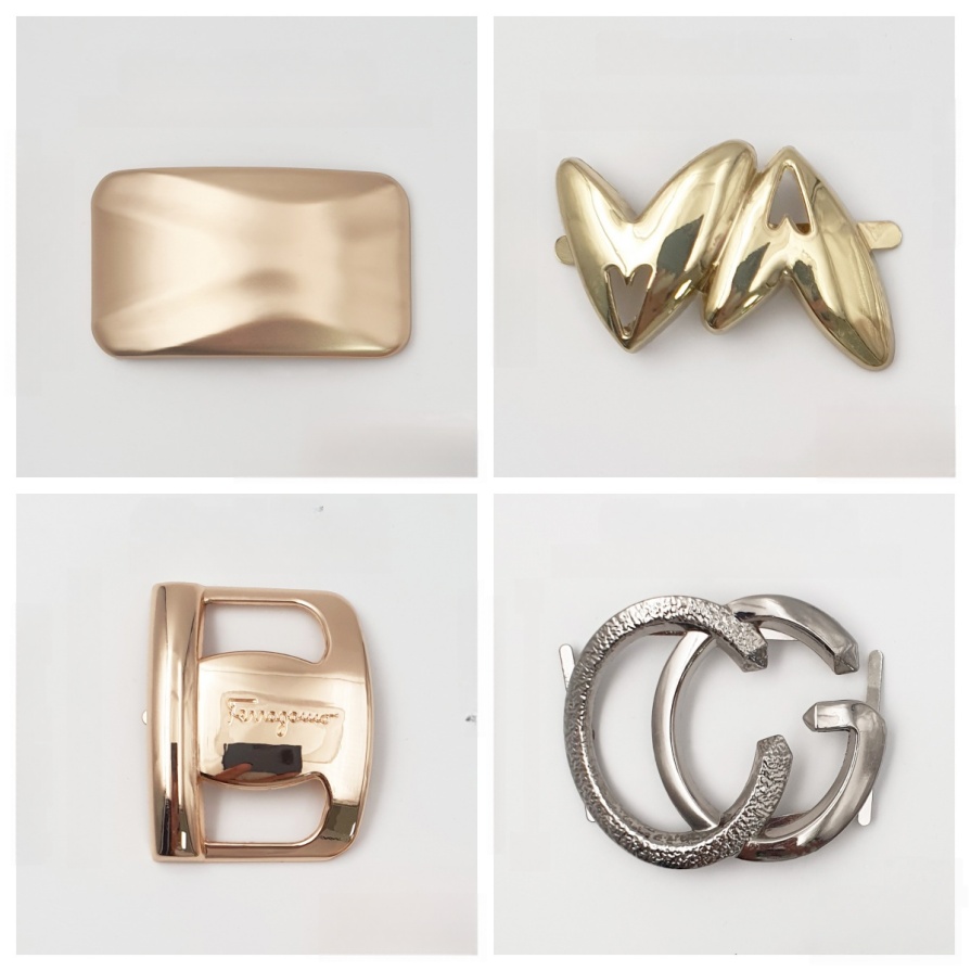 The product features a variety of eye-catching designs: there are classic brand logo styles (such as the double G and double B designs), as well as creative three-dimensional styles (heart shapes, geometric textures, pleated metals). The colors, including gold and silver, are suitable for different shoe styles - for a casual look, you can choose the simple letter logo style; for a glamorous look, it suits the large-sized three-dimensional buckles; for a personalized style, you can pair with the textured texture style.