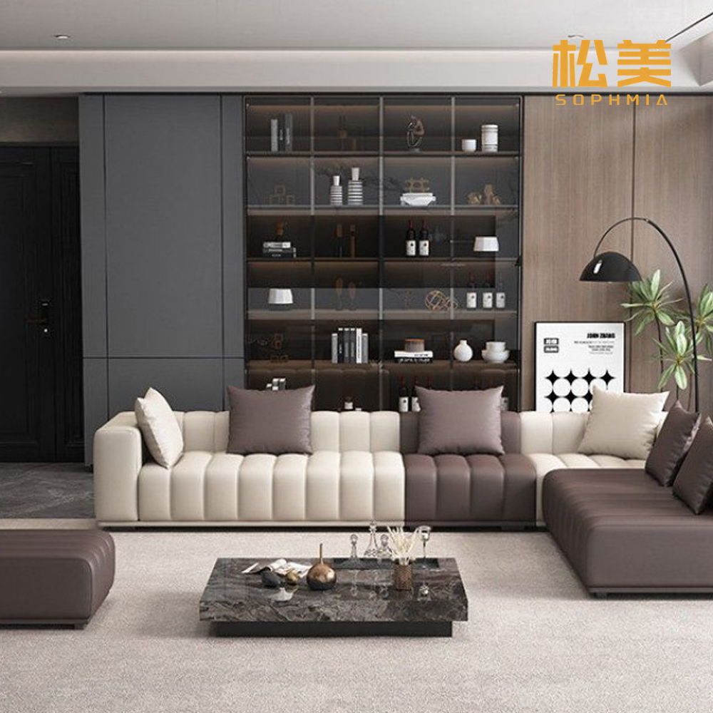 Our Two-Tone Leather L-Shaped Modular Sofa is a high-end statement piece tailored for modern home spaces, blending sophisticated aesthetics with exceptional comfort and space-saving flexibility. Crafted from premium genuine leather upholstery, the sofa features a stylish two-tone design that adds a layered visual appeal, offering superior seating comfort, wear resistance and easy maintenance—ideal for long-term home use. The L-shaped structure maximizes corner space utilization, while the modular design allows free combination to fit different living room layouts, complementing diverse home decor styles from contemporary to luxury.