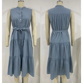 Sleeveless Waist Strap Pleated Design Shirt Dress