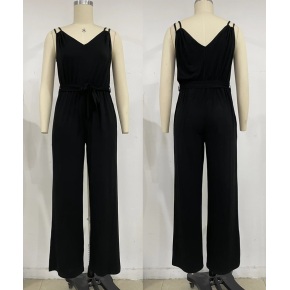 Suspended V Neck Waist Strap Straight Tube Jumpsuit