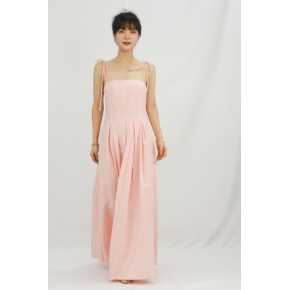 French Pink Suspender Waist Cinching Backless Long Skirt