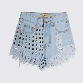 Hot Summer High Waist Baggy Rhinestone Denim Shorts